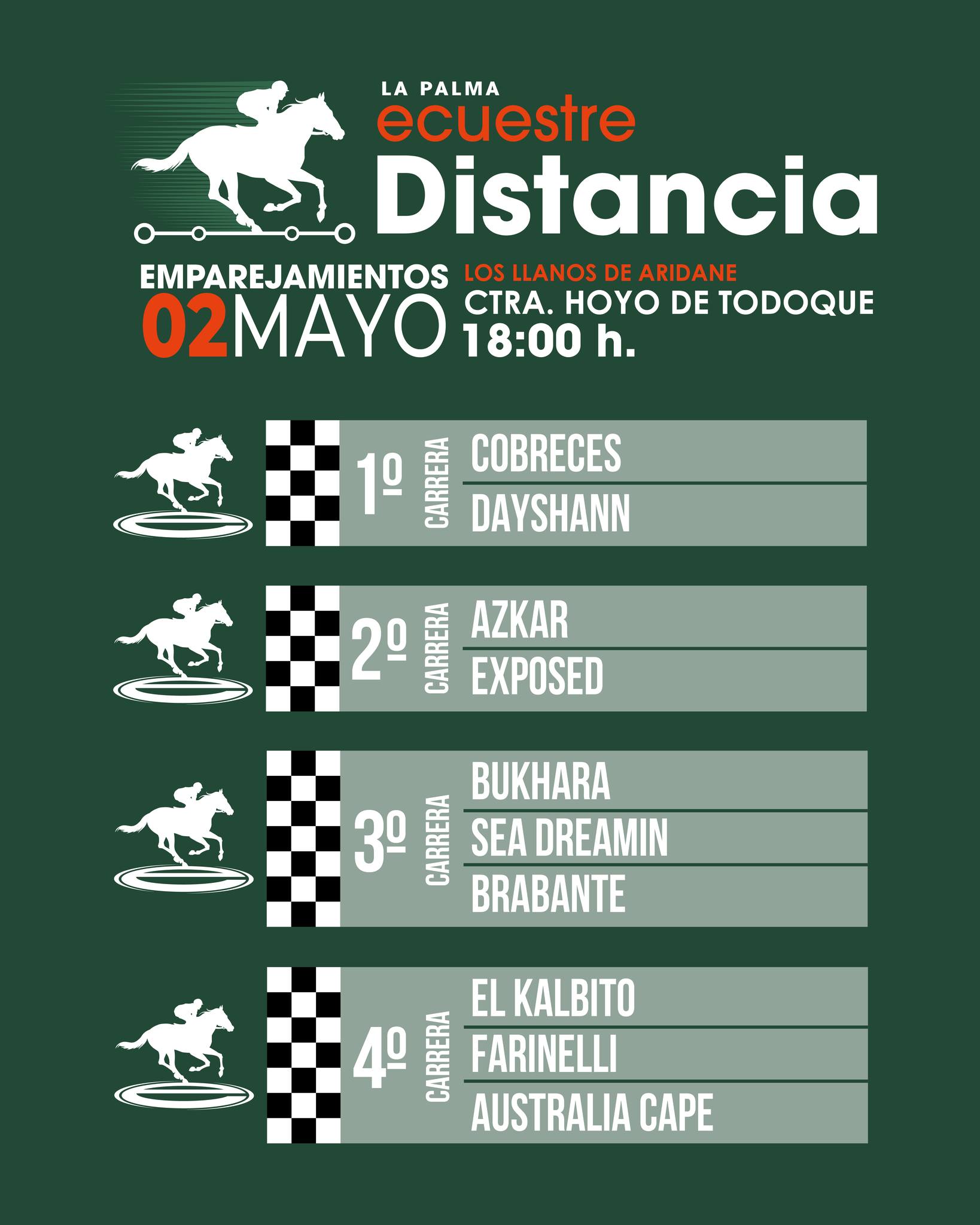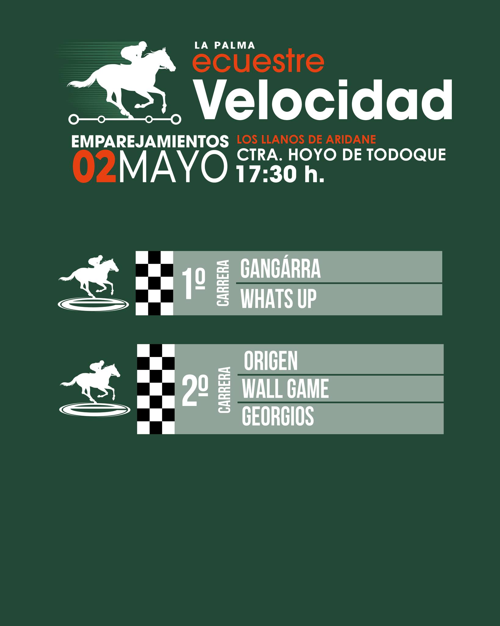 Así quedan los emparejamientos tras el sorteo realizado ante notario para la segunda fase del Campeonato Insular de Carreras de Caballos de La Palma Ecuestre 2026